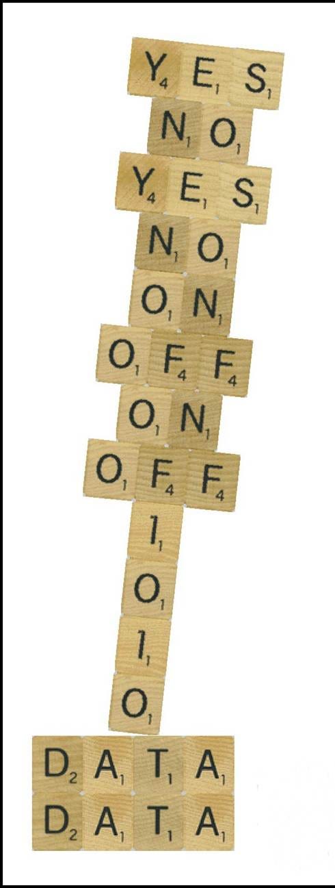Let’s switch to the more adult Scrabble letter tiles, which serve as vehicles for the letters to assemble words into a Shakespearean sonnet. The example below, The Leaning Sonnet of Data, consists of the necessary elements (binary) in computer code conceptualization that delivers data. That is the ‘narrative’ of this poem with the volta being DATA DATA.